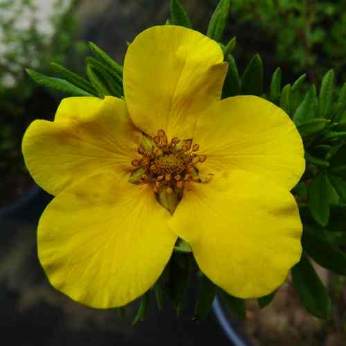 Высота лапчатки Голдфингер доходит до 1,5 метра. Растет она очень медленно. Красочные желтые цветки обильно покрывают Голдфингер в период цветения. Крона пышная и широкая. Аккуратные листья зеленого окраса обладают особыми декоративными качествами.
