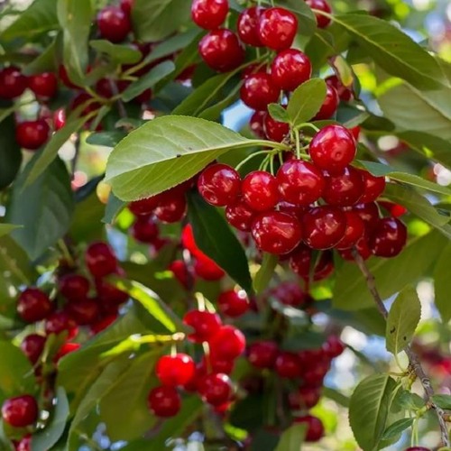 Плоды — главная изюминка сорта: тёмно-красные, массой 4–6 г, сердцевидные или округло-конические, с сочной мякотью и кисло-сладким вкусом (оценка 4,2 балла). Содержание сахаров — до 14%, кислот — до 2%. Косточка крупная, легко отделяется, сок светло-красный. Возможны «двойняшки» — ягоды на одной плодоножке. Созревание — конец июня – июль. Подходят для еды, заморозки и переработки.